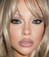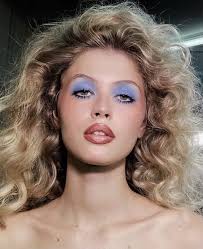 In the 1960s thick eyeliner was applied to the upper lash line often winged false lashes were essential for a dramatic look. Light and frosted eyeshadows like pale blue, mint or white were popular foundation was light and pale blush was softly applied in pastel pinks or peaches, and lips were often nude or light pinks. Eyebrows were sharp and arched.