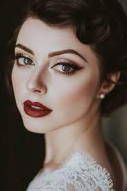 In the 1920s bright pinks and reds were popular for blush,along with thin, arched eyebrows. Dark, smoky eyeshadows in shades of black, brown, or purple were common. Eyeliner was used to outline the eyes and smudged to create a smoky effect. Deep reds, burgundies, and plums were the most popular lip colors, with smooth pale skin achieved with matte powder.